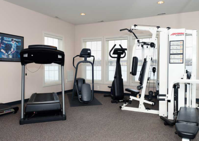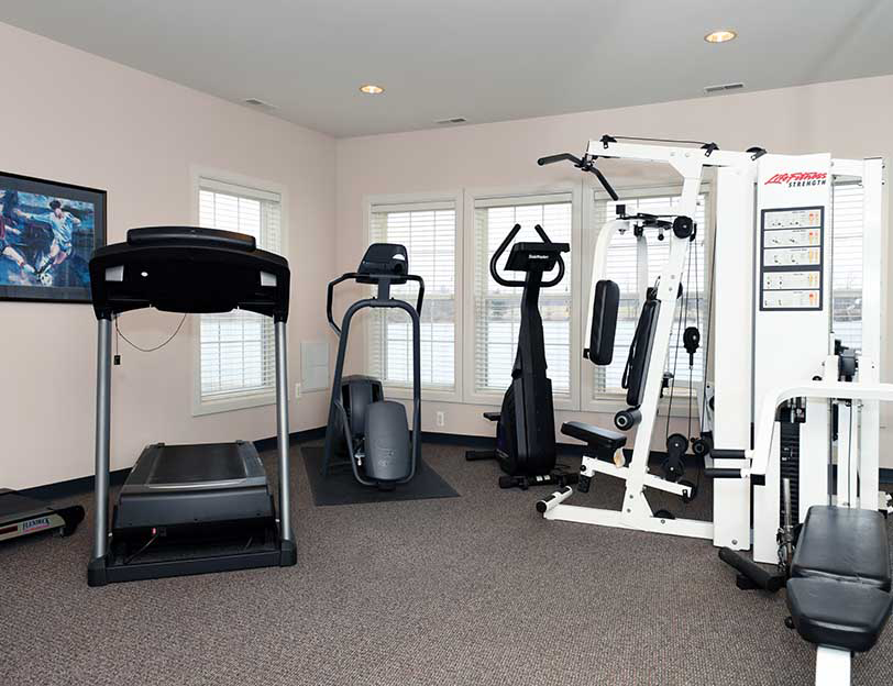 The Gym boasts a treadmill, stair climber, stationary bike and cable weight machine for a complete workout. The gym also has a television to catch up on things while exercising.