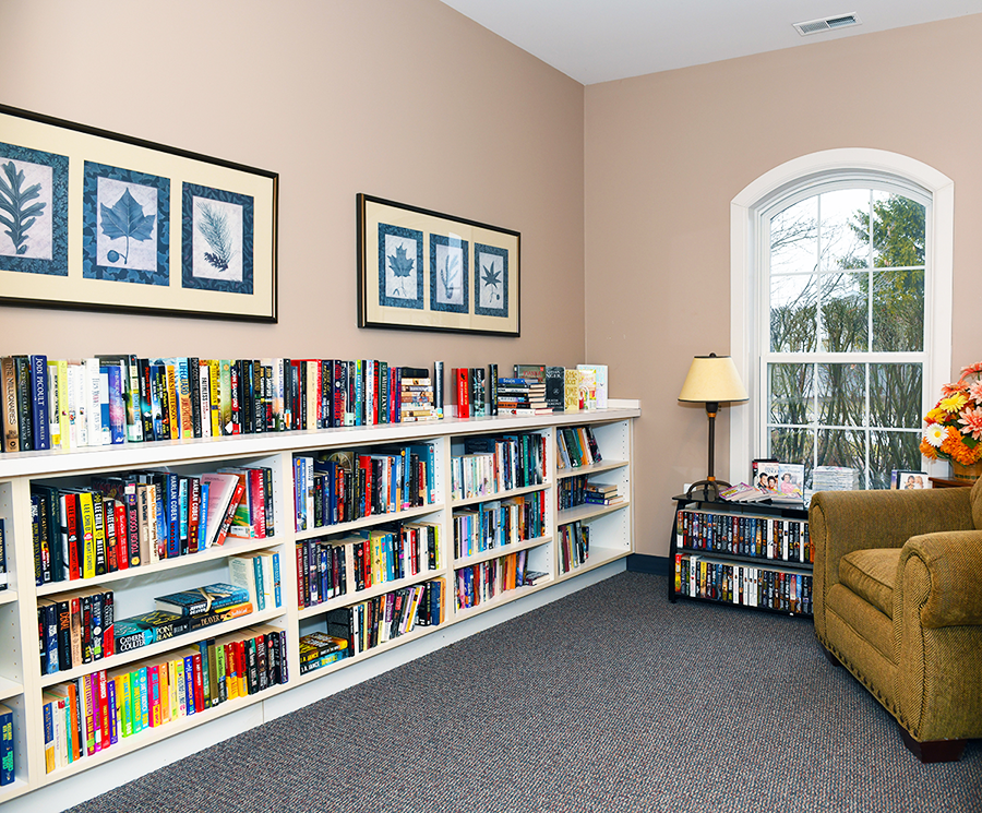The Reading Room is a quiet environment for reading that book you have been wanting to finish. There is a lending library with a large selection of books, so every resident in the community can share their favorite stories.